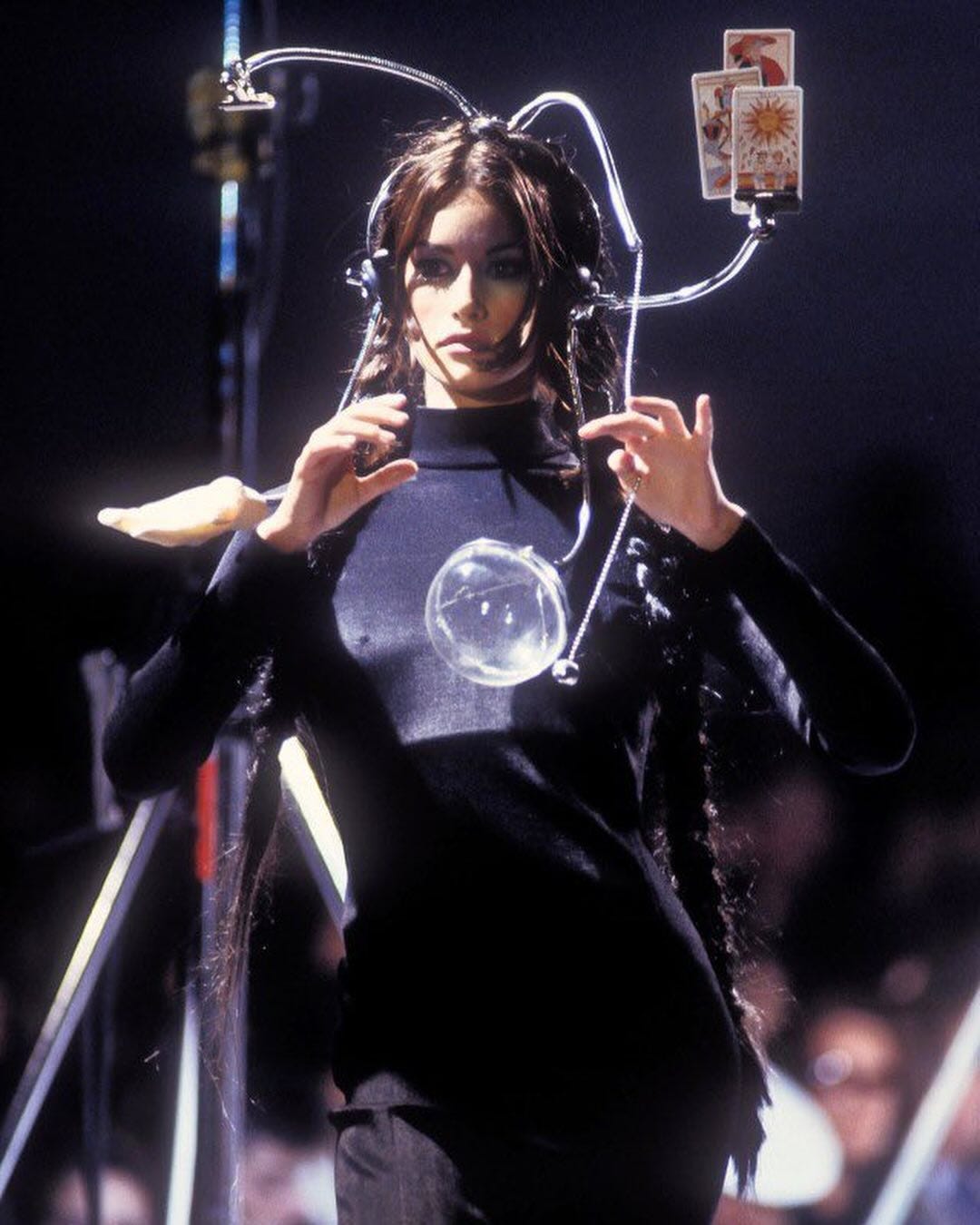 Saved because: I came across this archival image from JPG F/W ‘92 and I can’t stop thinking about this bonkers headpiece mixing what looks like headphones, an orb, a hand and tarot cards. This is what I’d like to be wearing all spooky season, thank you very much. I also just discovered he showed another headpiece at the end of the collection that features a cigarette holder—couture multitasking only! You can see more in this video.