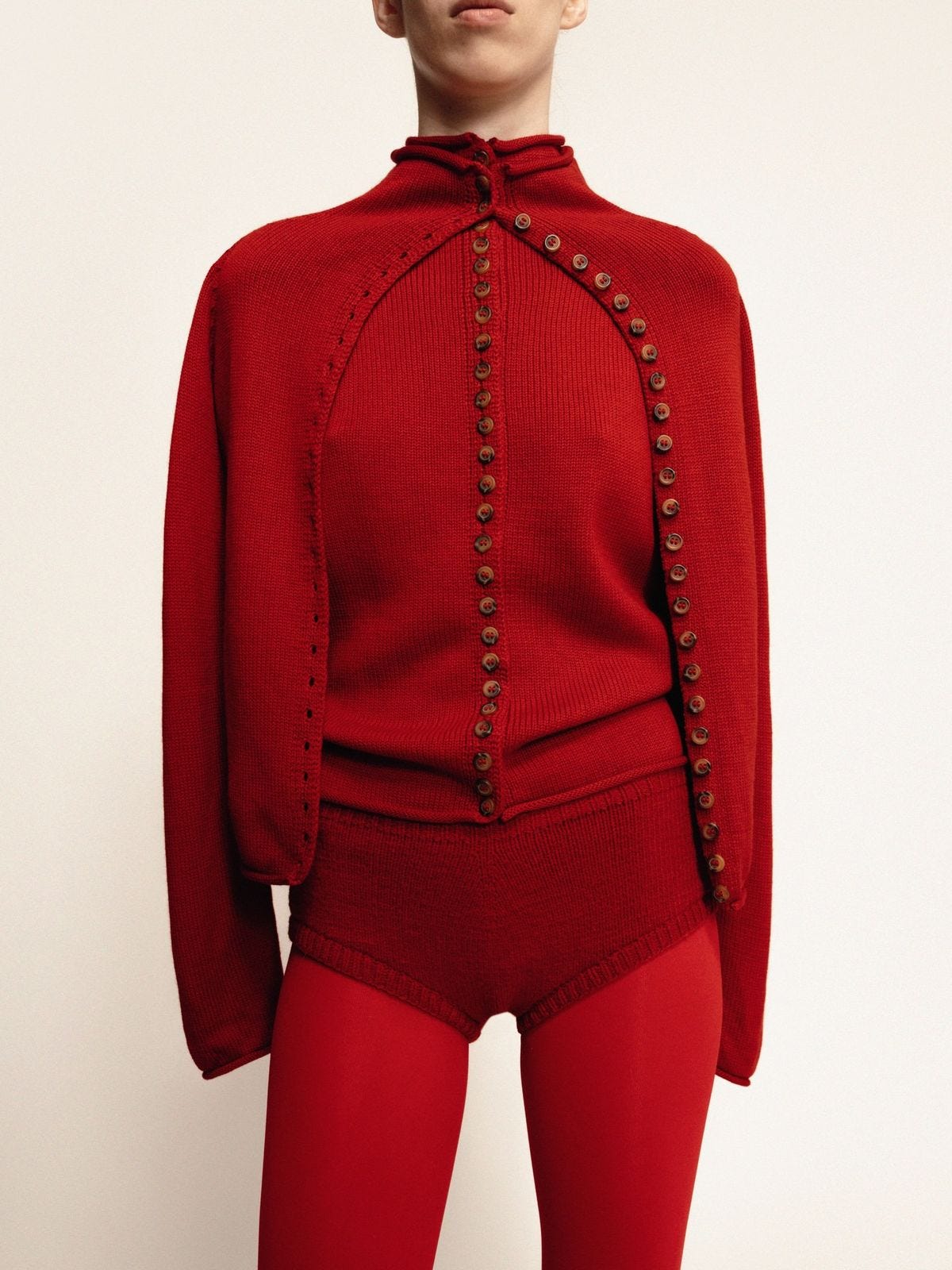 Very into this red knit ensemble