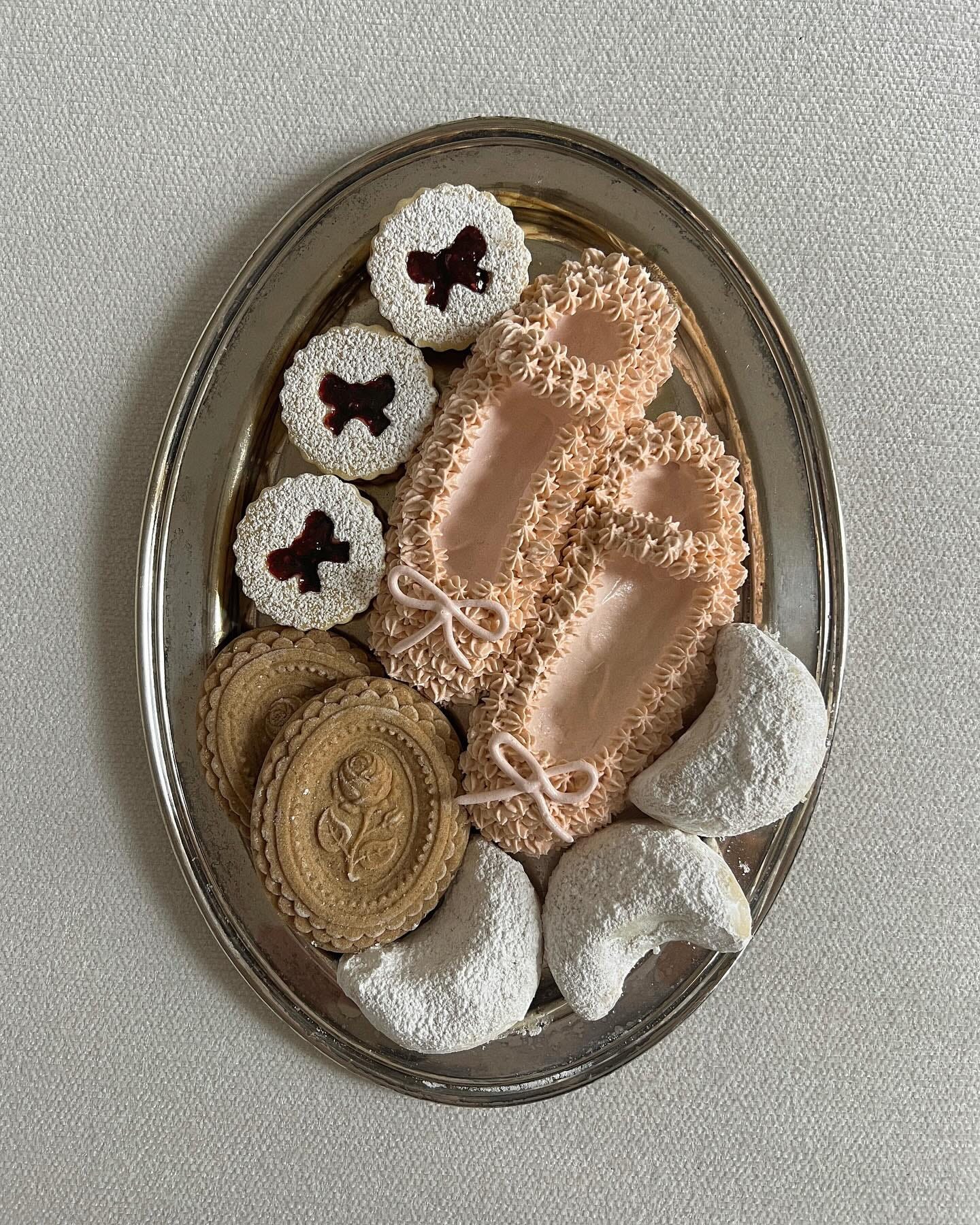Saved because: Baker Rikki Li made these in collaboration with Catbird. I cannot get over how delicate the pressed rose shortbread are…and the clever little ballet slippers.