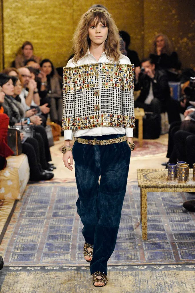 My Métiers d’art obsessions will always be Paris-London Pre-Fall 2008, with every model styled in a Winehouse beehive, Paris-Rome for Pre-Fall 2016 in a famous Roman soundstage, the ornate Paris-Moscow in 2009, and Paris-Byzance for Pre-Fall 2011. I could go on. (Like, can we all pitch in and buy this insane coat from the 2008 collection?). It was even so meaningful to me when Virginie Viard took Chanel to Manchester two years ago—embracing the city’s incredible musical and cultural history to inform the looks, giving Chanel a markedly English moment.